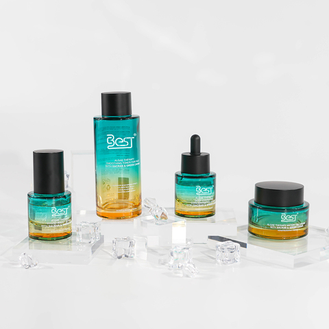 New Luxury Gradient Green 30 50 150 ml Empty Glass Cream Jar Toner Essential Oil Dropper Glass Bottle for Skincare Packaging