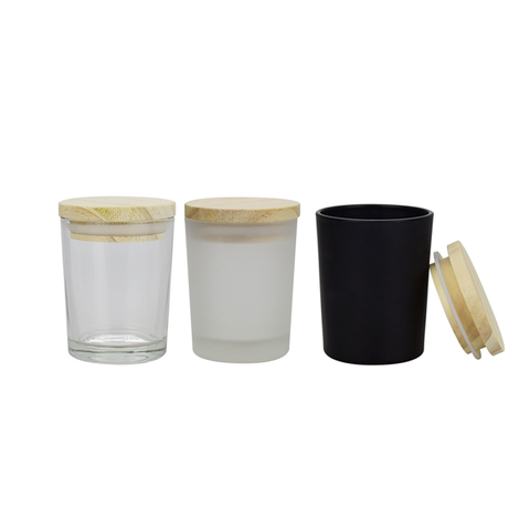 New Design Hot Selling 180g Ready to Ship Clear Frosted Amber Black Black Glass Candle Jar with Wooden Metal Lid